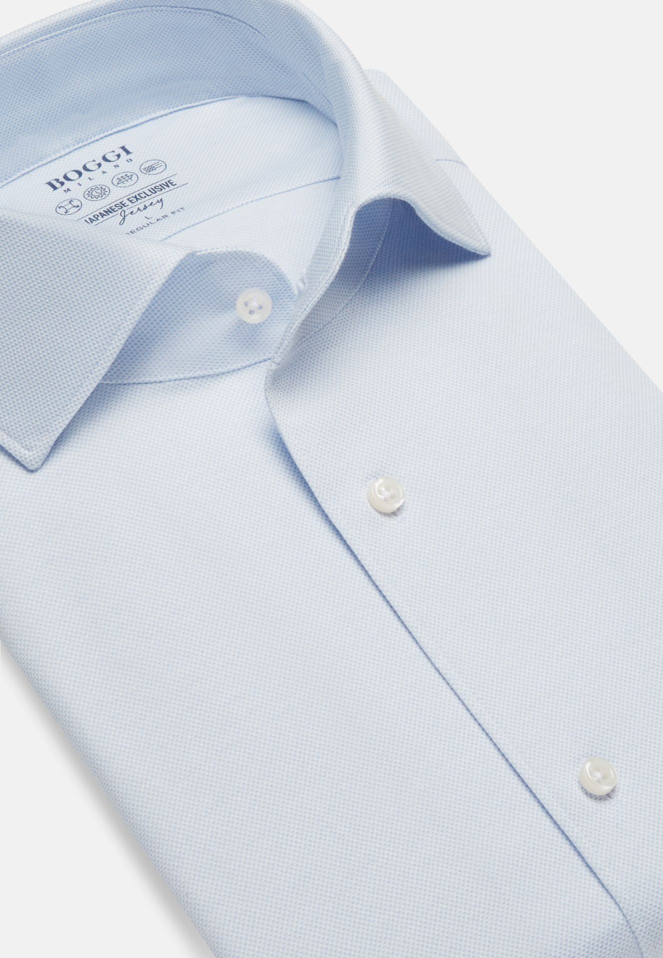 Boggi košulja od mješavine japanskog pamuka. Sastav i posebna struktura tkanine jamče impresivnu otpornost na gužvanje, maksimalnu udobnost, izvrsnu prozračnost i jednostavno održavanje.