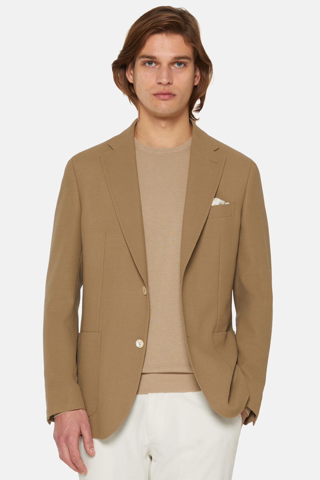 Vuneni sako s jednorednim kopčanjem. Regulat fit kroj, potpuno podstavljeni sako s patch džepovima.