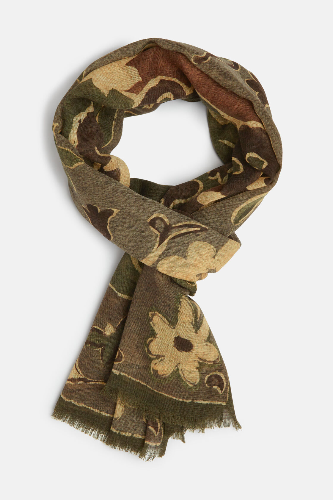 Boggi vuneni šal s printom maslinasti