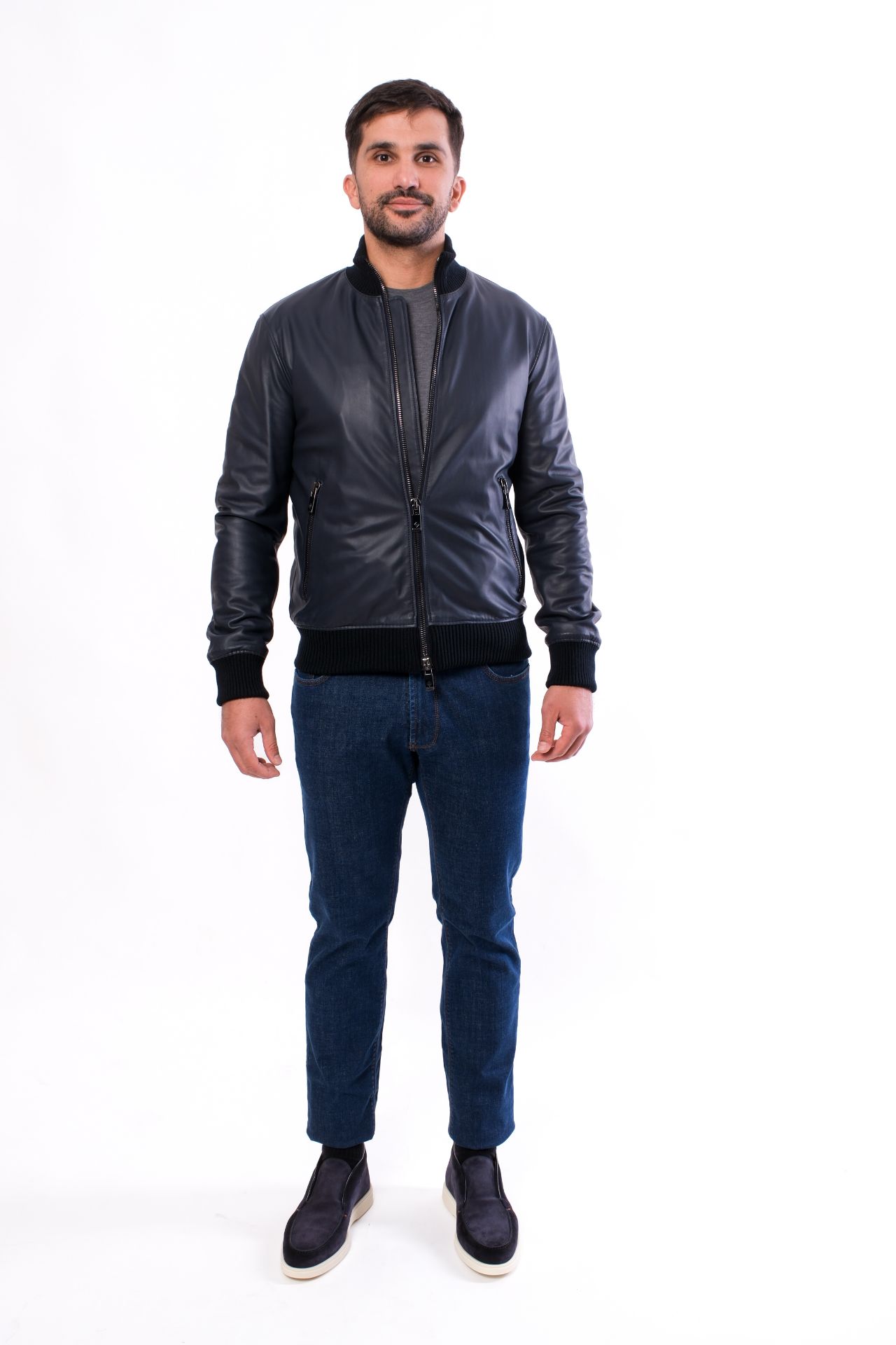 Pal Zileri kožna bomber jakna tamno plava